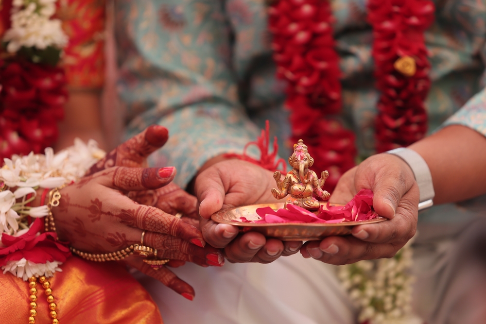 การสวดมนต์บูชาเทพฮินดูโดยพราหมณ์ เป็นพิธีเริ่มต้นของช่วงเวลามงคล ในพิธีแต่งงานอินเดีย โดยพราหมณ์จะประกอบพิธีบูชาพระพิฆเนศ ซึ่งถือเป็นเทพแห่งการขจัดอุปสรรคและความสำเร็จ เพื่อขอพรจากเทพเจ้าให้ชีวิตคู่ของบ่าวสาวเต็มไปด้วยความสุขและความเจริญรุ่งเรือง